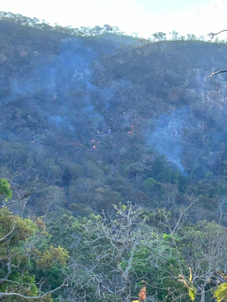 No dia 30 de setembro, o Corpo de Bombeiros de Unaí continua às ações de combate a um incêndio florestal na Serra de Arinos, próximo ao Assentamento Chico Mendes, Fazenda Mangues juntamente com outras guarnições do Corpo de Bombeiros e treze brigadistas do município de Arinos e Diego da Defesa Civil de Arinos.